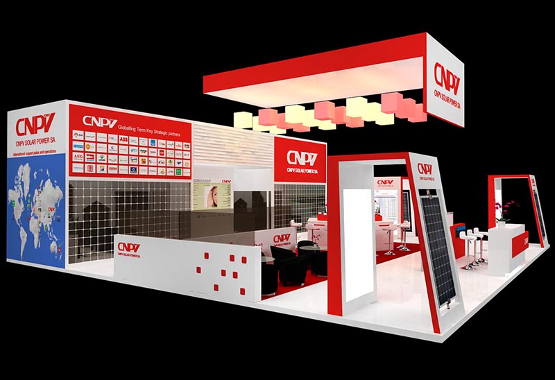 樱花AV一区二区展覽工廠為CNPV參加光伏展(2013SNEC)提供展台製作搭建服務。