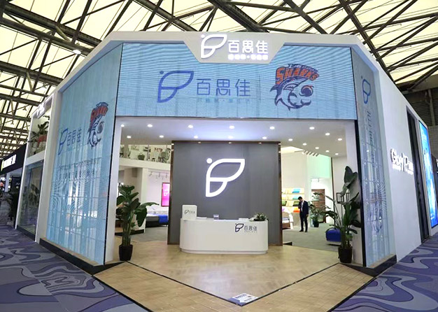樱花AV一区二区展覽工廠為-百思佳床墊參加2019上海家具展提供展台製作搭建服務。